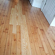 Here in this picture is another case. An old pine floor with water and rust damage. Sometimes a customer has a type of old wood that is very hard to come by.